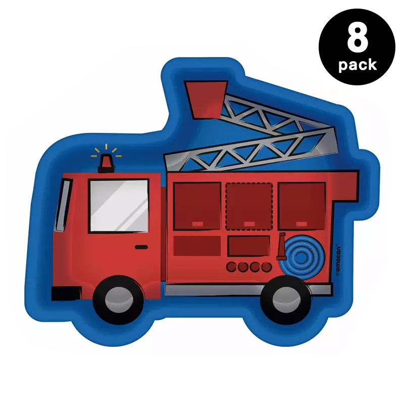 First Responder Fire Truck Shaped Paper Plates 8 Pack