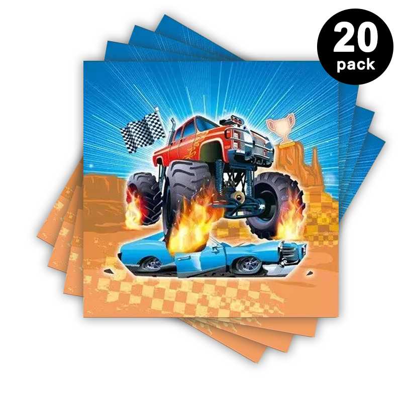 Keep the party mess under control with this 20-pack of Monster Truck Luncheon Napkins! Featuring bold and playful monster truck designs, these napkins add a fun touch while helping little hands stay clean during your celebration. Perfect for any monster truck fan’s party.