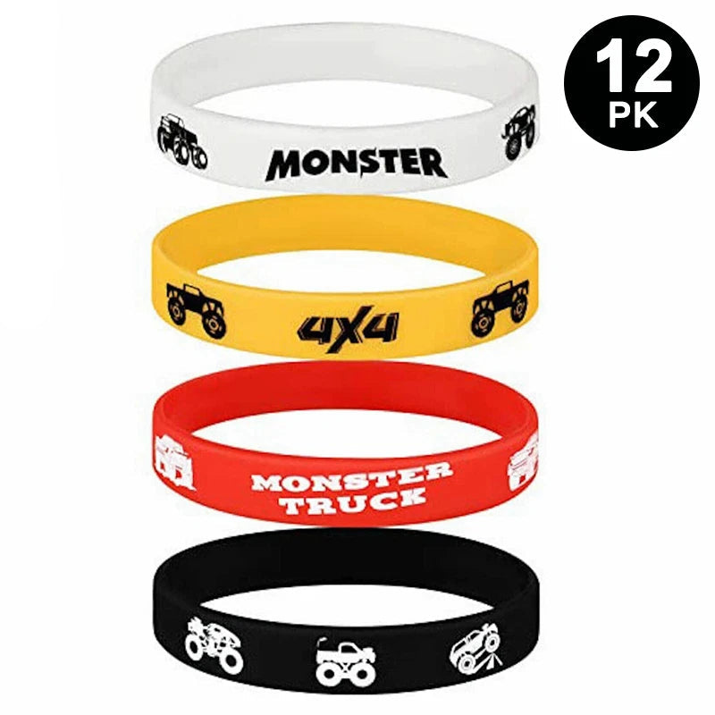 Monster Truck Theme Silicone Bracelets Rubber Wristbands 12 Pack