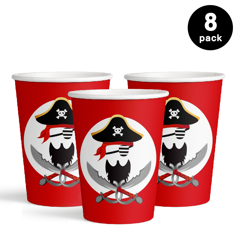 Pirate Theme 250ml 8oz Paper Cups 8 Pack
