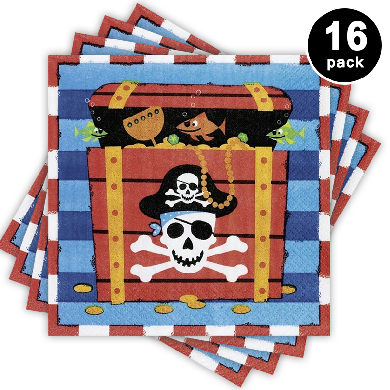 Add a swashbuckling touch to your party table with this 16-pack of Pirate Treasure Theme Luncheon Napkins! Featuring playful pirate designs, these napkins are perfect for keeping things tidy while bringing fun and adventure to your celebration. Soft, absorbent, and sure to delight little buccaneers!