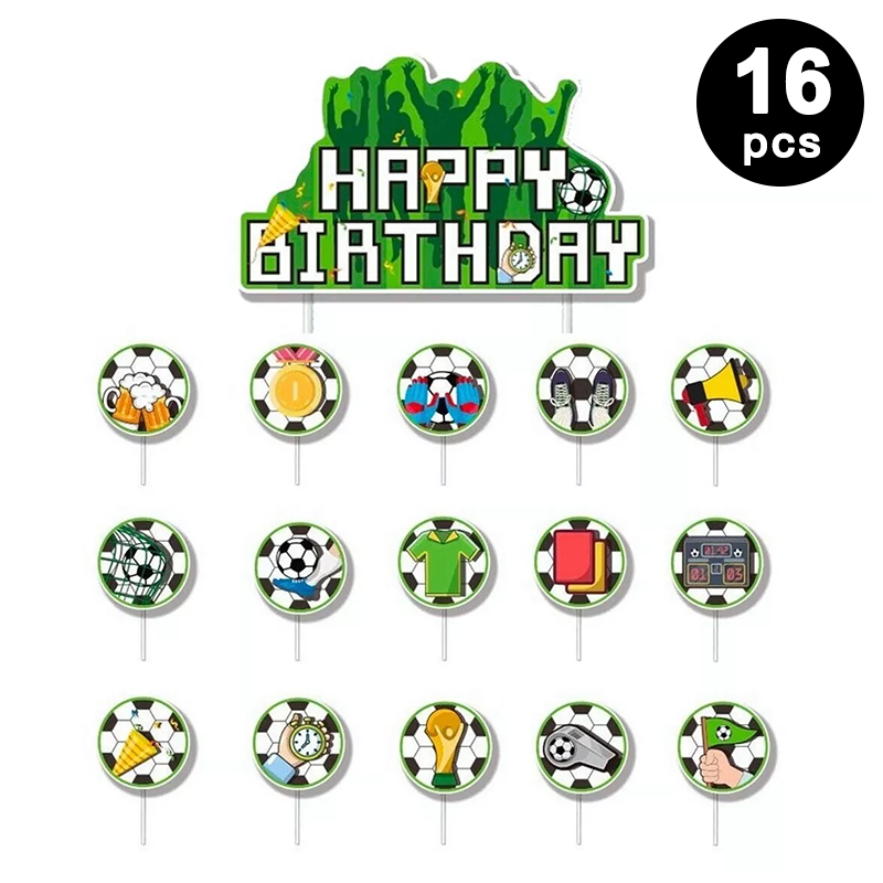 Soccer Theme Birthday Cake Cupcake Toppers 16 Pack