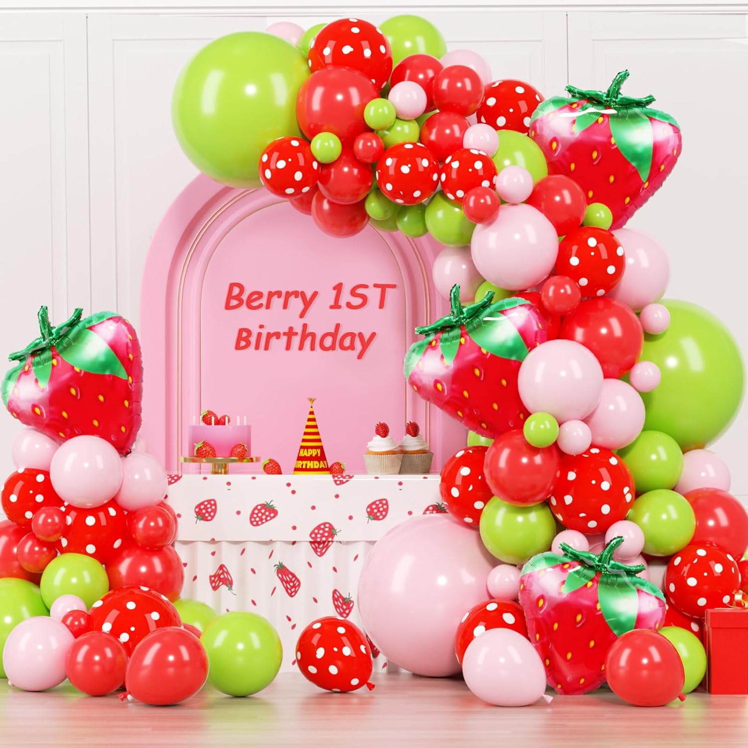Strawberry Theme Red Pink Fruit Green Balloon Garland Kit