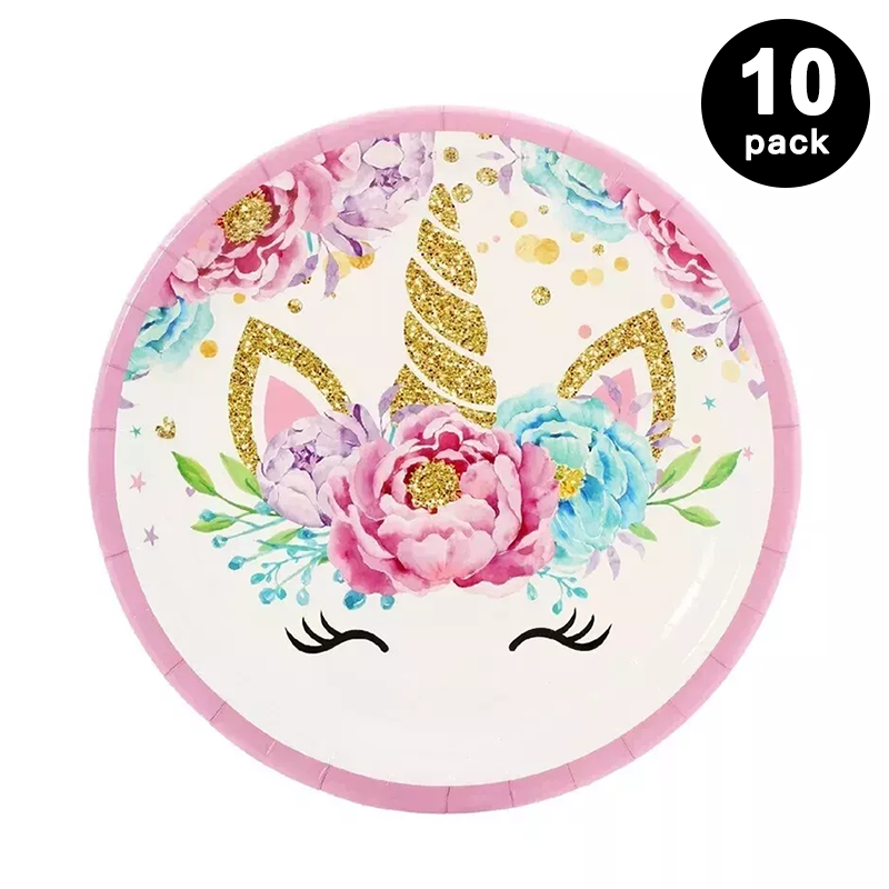 Unicorn Theme 7 inch 17cm Paper Plates Round 10 Pack